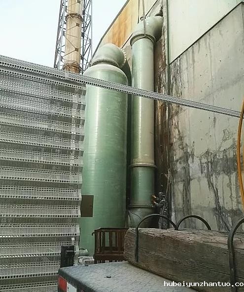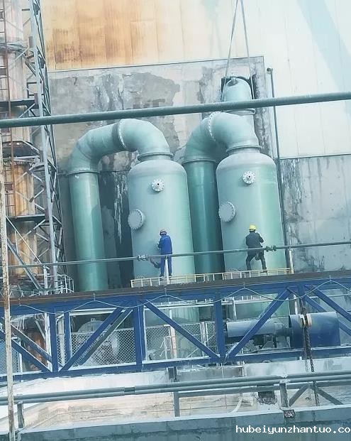 硫酸镁生产工厂中产生含硫废气,为防止其污染大气需对其进行脱硫、除尘处理,但原有系统设备为PE材质制造,由于北方气候原因,此材料损毁过快,故障频发,为保证正常生产,已对现有尾气除尘净化系统进行升级改造,将原有设备更换为玻璃钢材质。