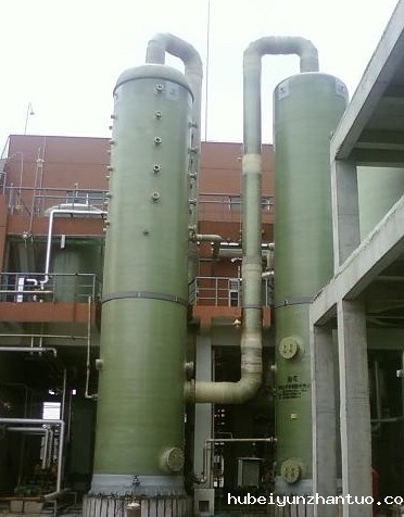 2、防堵措施。玻璃钢脱硫塔采用规整填料,必须和静电除焦等设备配合使用,净化半水煤气,另外玻璃钢脱硫塔吸收过程中会伴有单质硫、铵盐等固相杂质析出。若不采取措施,长期积累,会堵塞分布器,影响玻璃钢脱硫塔效率。