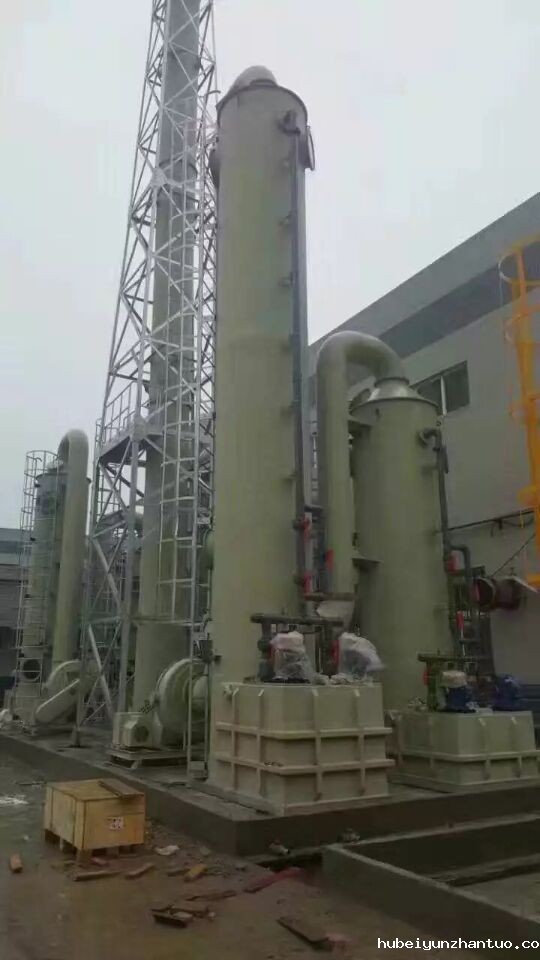 玻璃钢酸雾净化塔分单塔体和皇家体。塔体可依据具体情况选用FRP/PP/PVC等原材料制做,选用环形塔体,用法兰盘按段连接而成。实际由贮液箱、塔体、进风段、自喷层、填充料层、漩流除雾层、出风锥帽、观检孔等构成。
